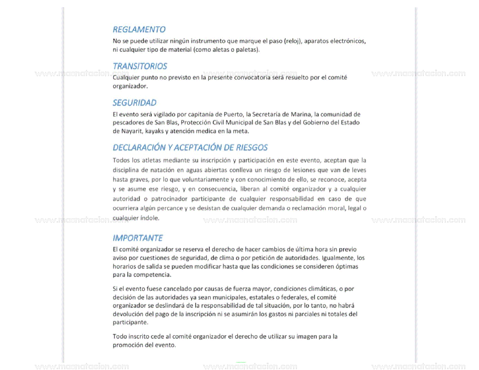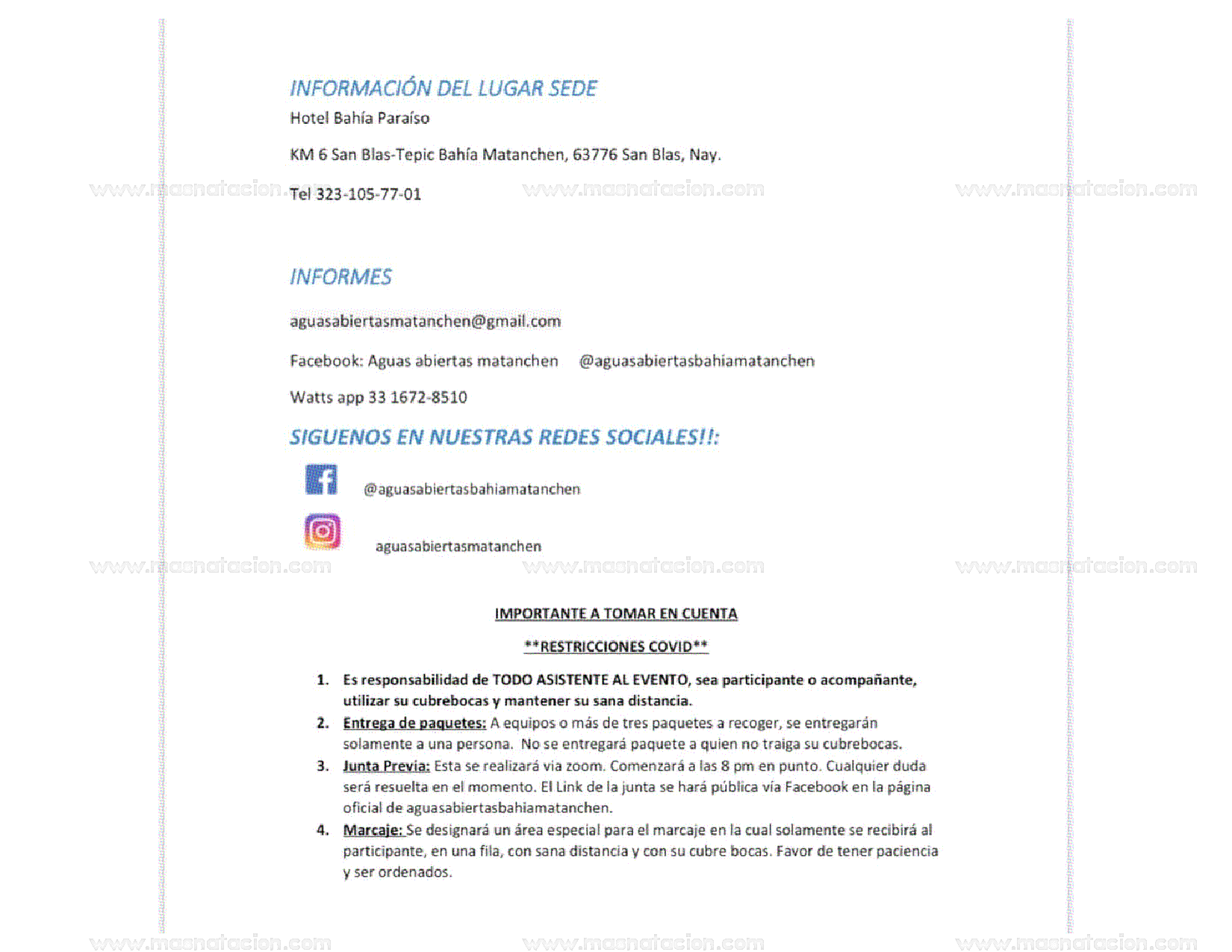 Reto Aguas Abiertas Bahia de Matanchen Riviera Nayarit 2022 Matanchen, Nayarit, México 26 de febrero del 2022 Convocatoria Resultados
