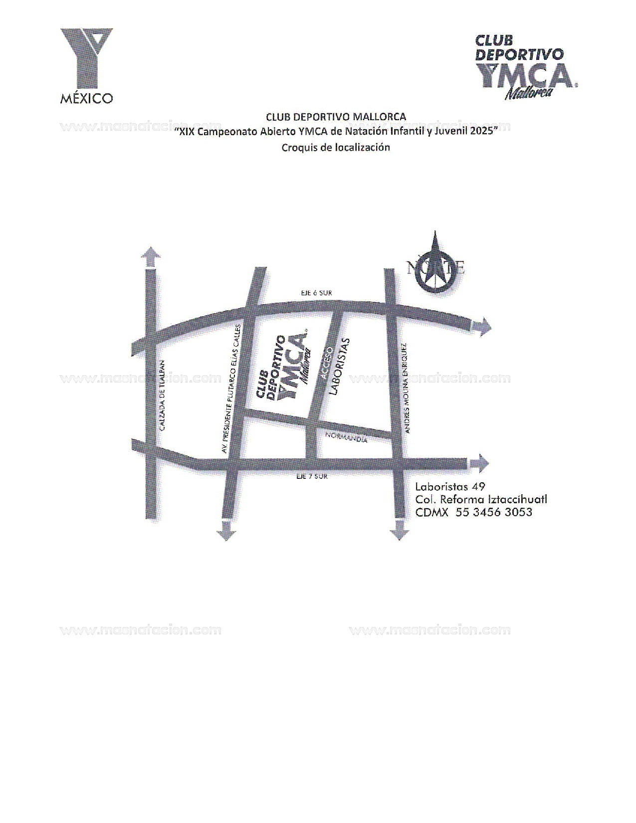 XIX Campeonato Abierto Ymca de Natación Infantil y Juvenil 2025 Ymca Mallorca, Ciudad de México, México 15 de marzo del 2025 Convocatoria Resultados