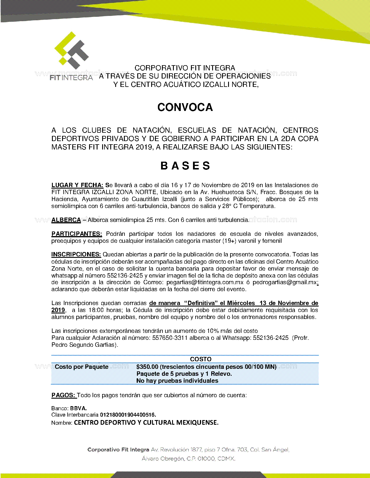 2Da Copa Masters Fit Integra 2019 Fit Integra Izcalli Zona Norte, Estado de México, México 16 de noviembre del 2019 Convocatoria Resultados