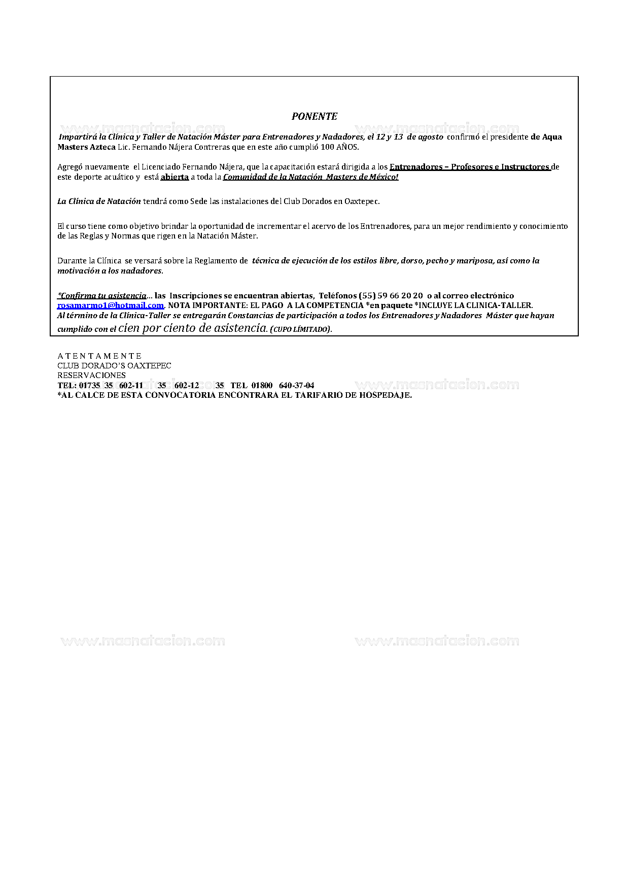 Campeonato de Estrellas Natación Masters Curso Corto 2022 Club Dorados Oaxtepec-Morelos, Morelos, México 12 de agosto del 2022 Convocatoria Resultados