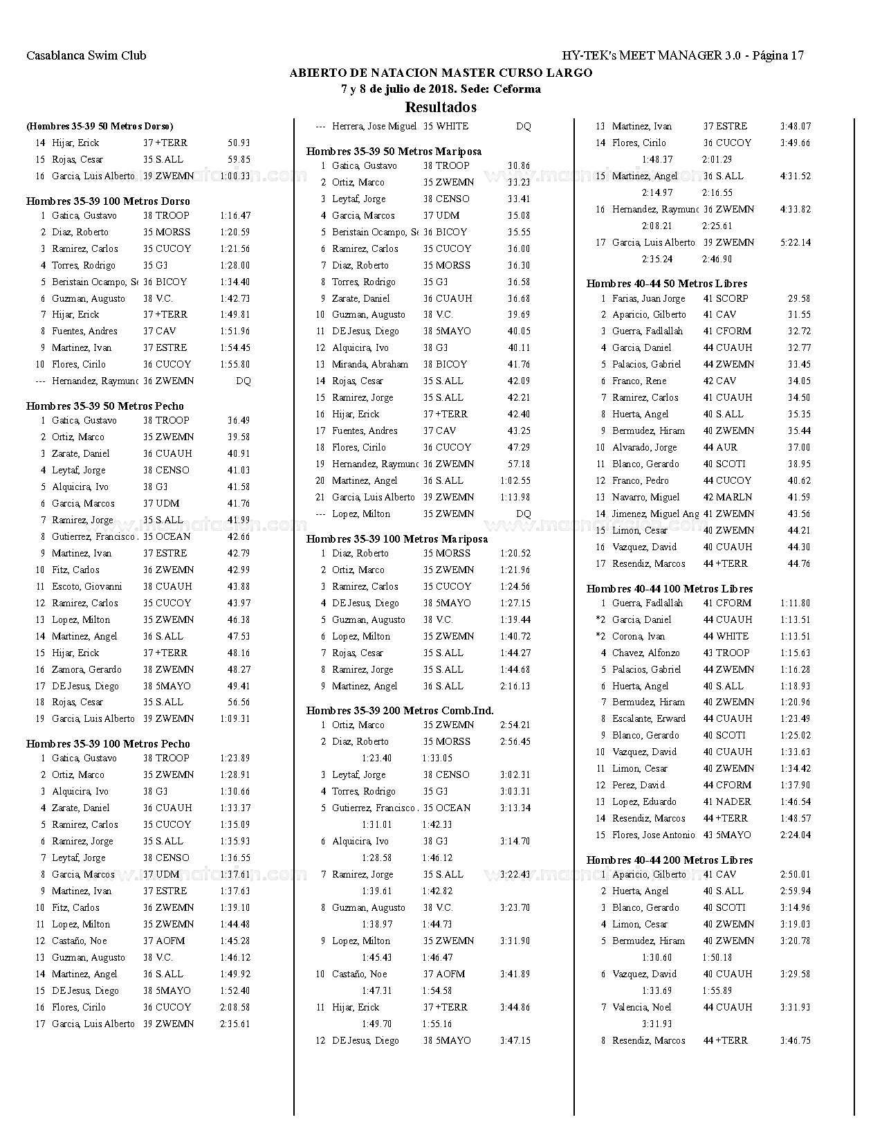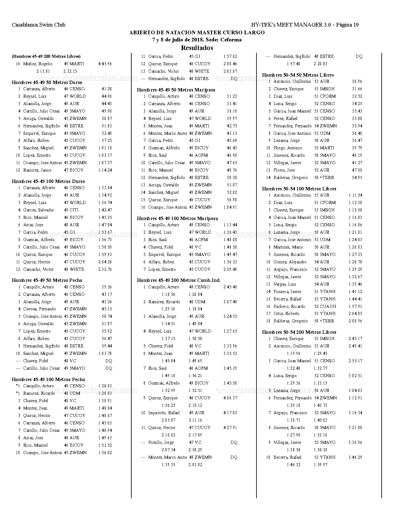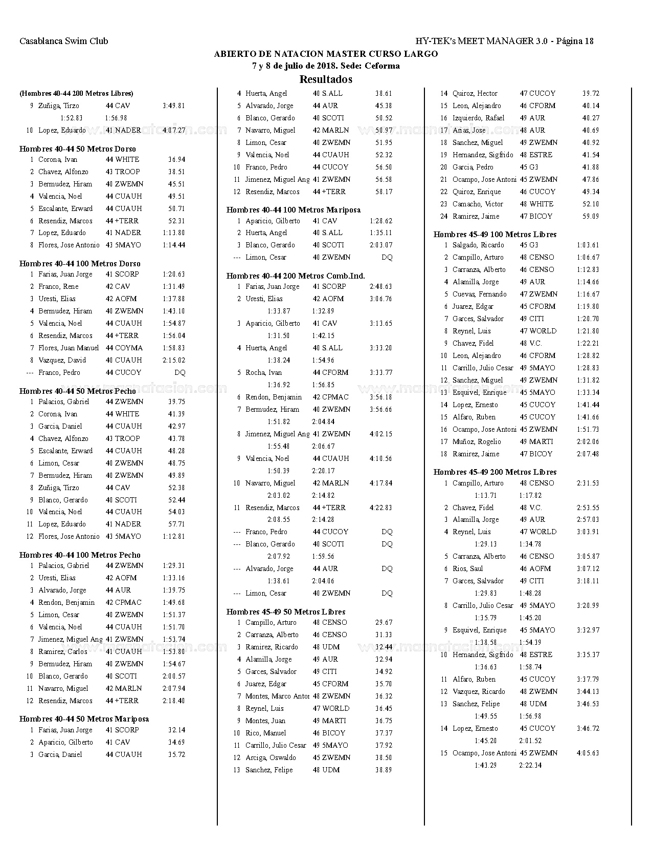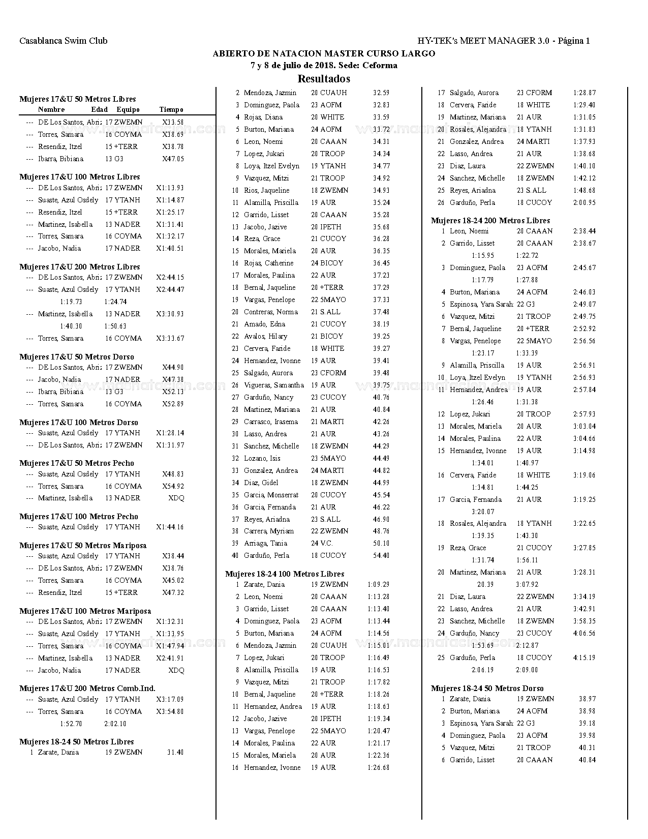 Campeonato Aqua Masters Azteca 2018