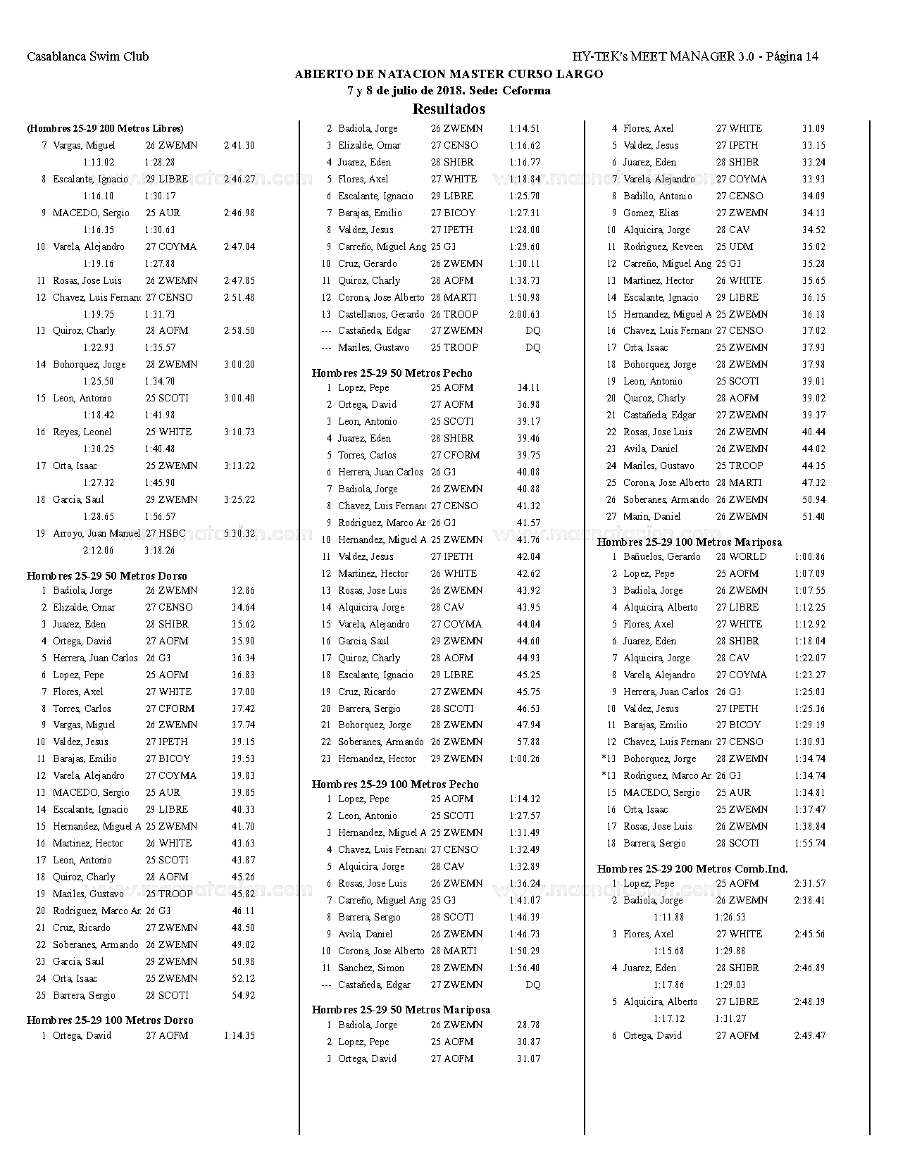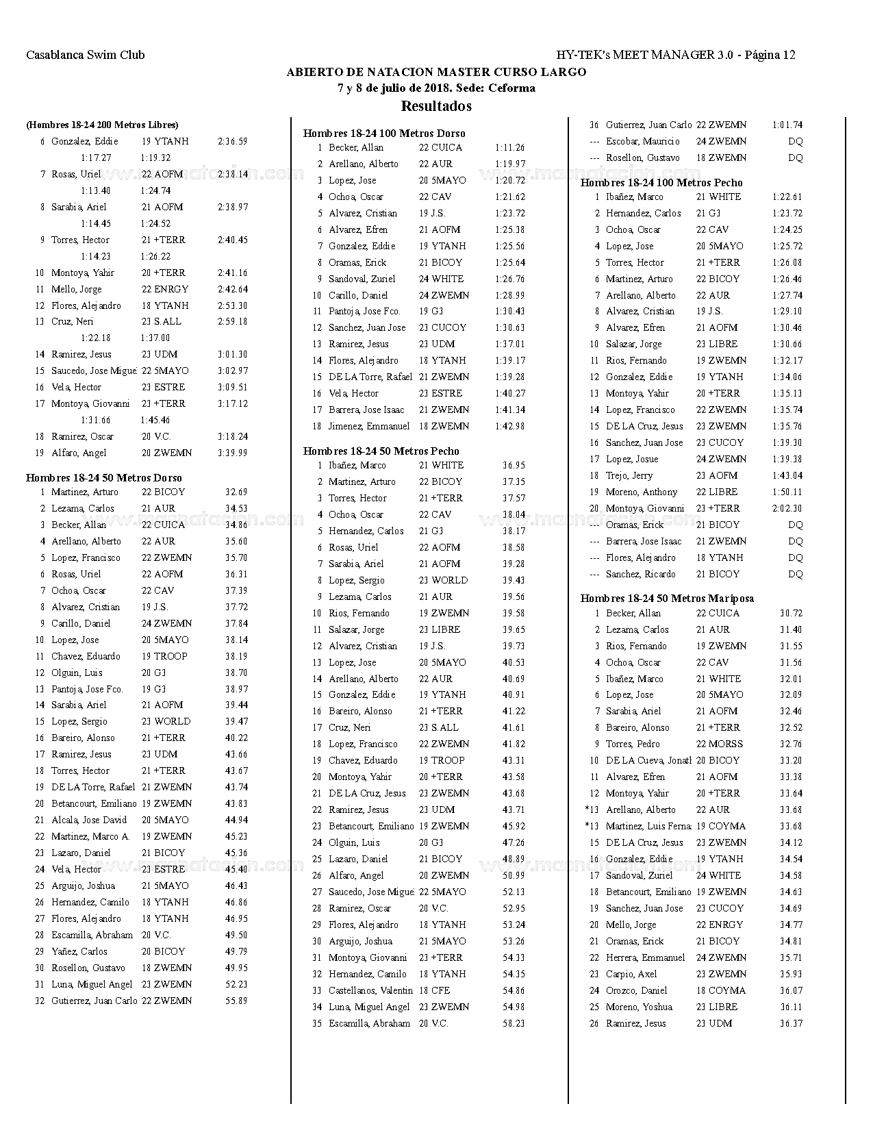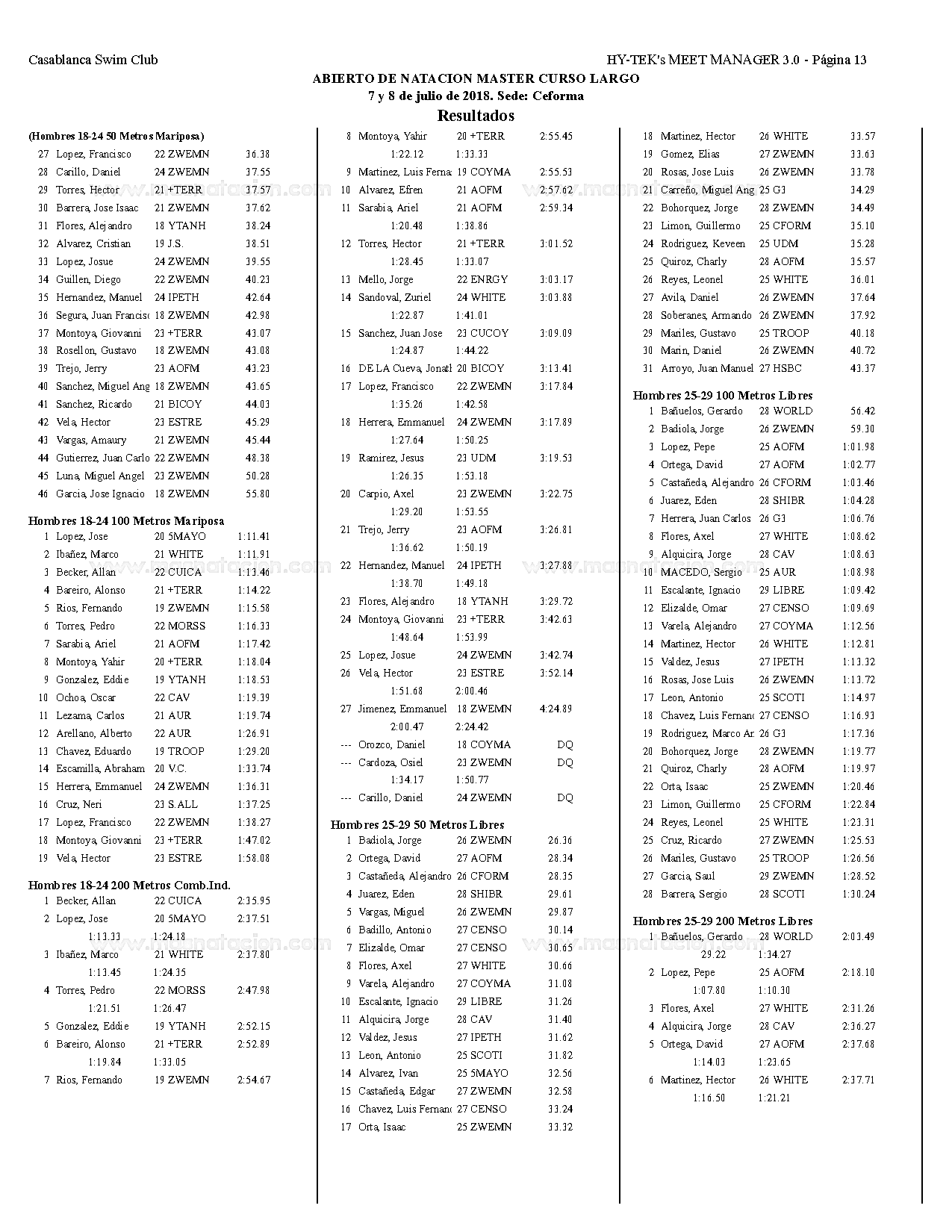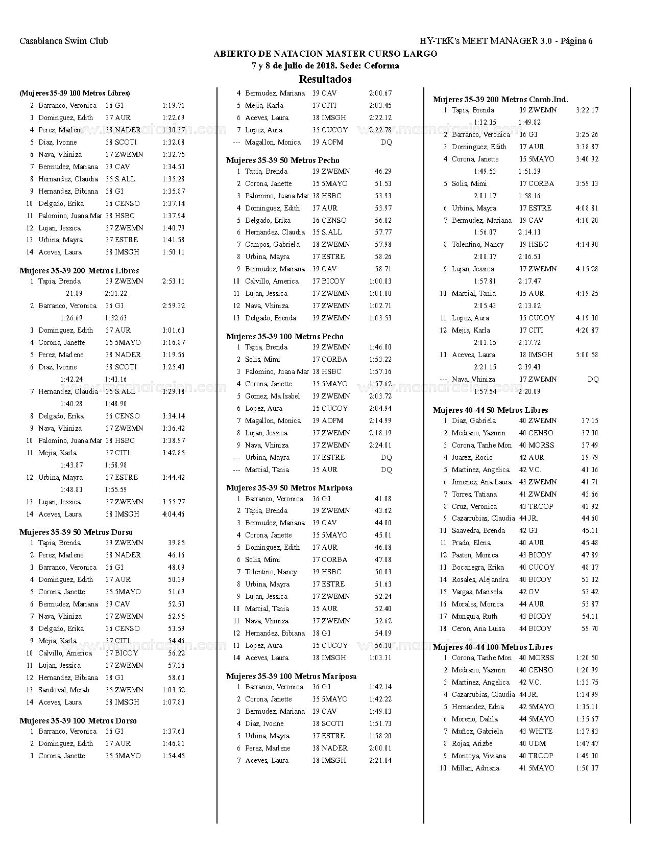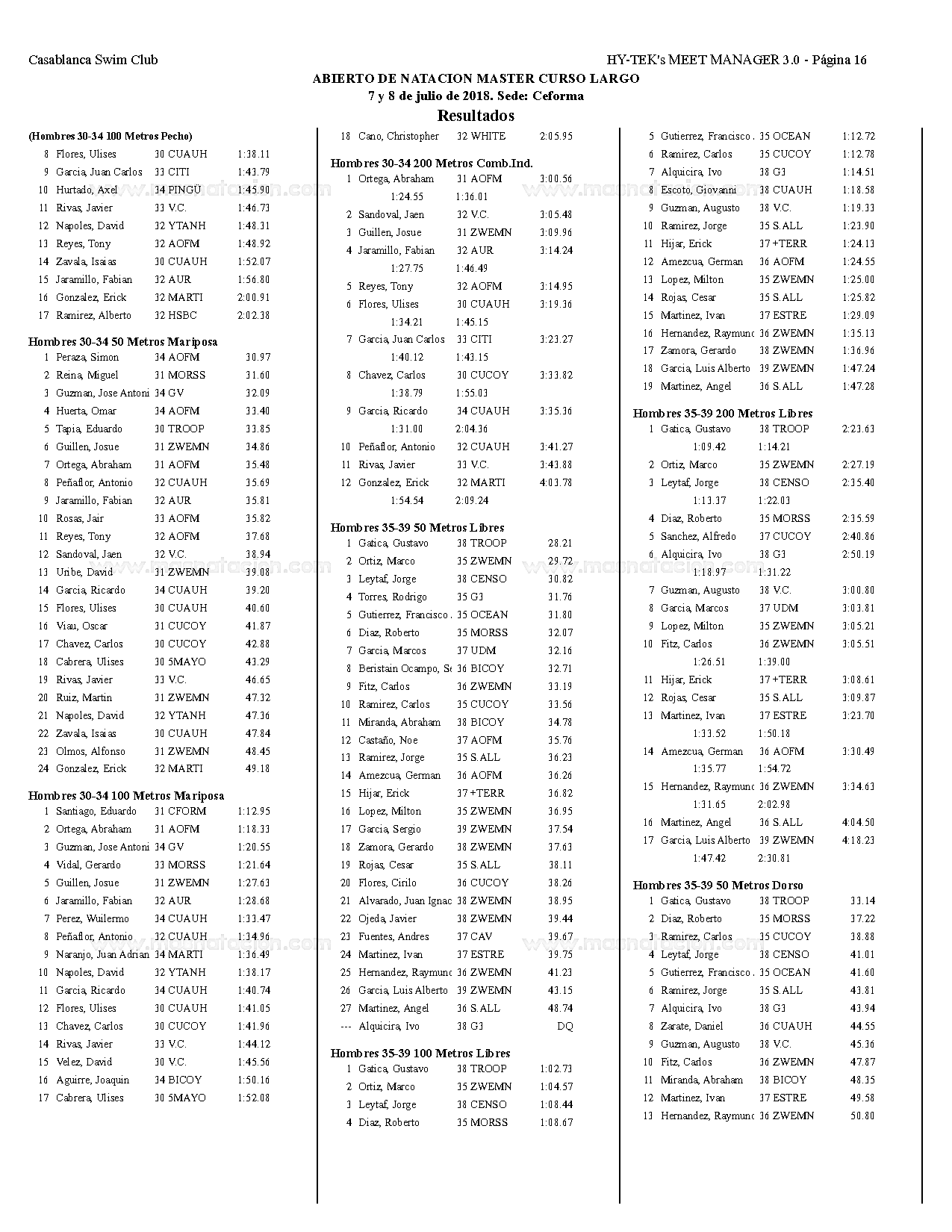 Campeonato Aqua Masters Azteca 2018